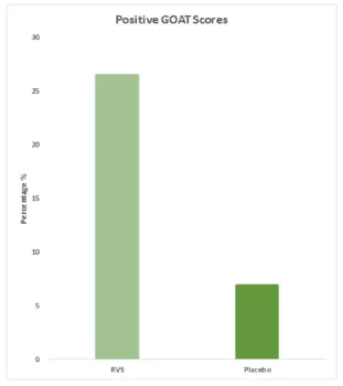 Following is sample data for the percentage of individuals showing the positive score on the GOAT in the groups treated with Rosuvastatin (RVS) and placebo.