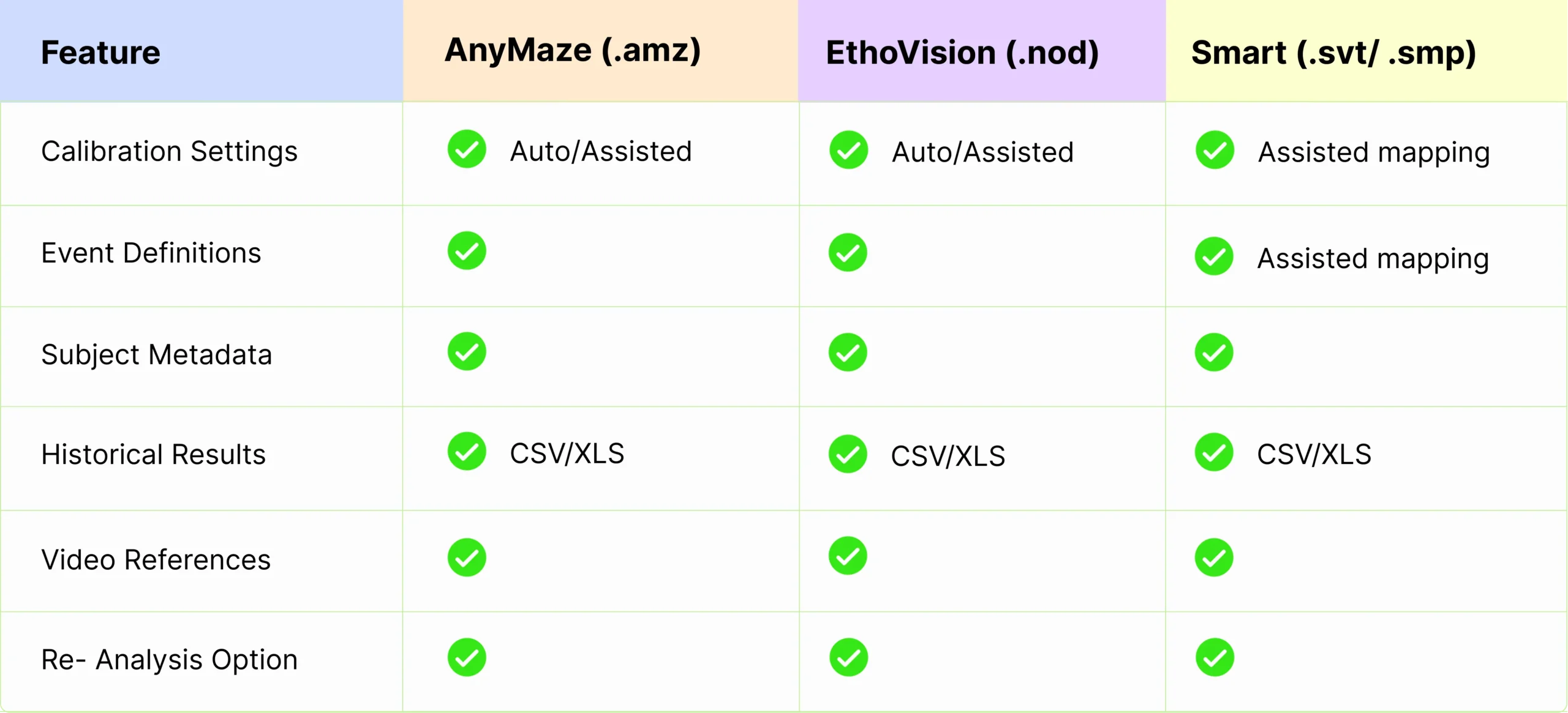 We import .svt/.smp session data, tracking settings, and migrate CSV/XLS results.