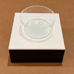 The DSC is designed with unique variations compared to conventional chambers with vertical walls extending from floor to ceiling. The chamber features a 3.5 mm high glass ceiling coated with silicone paint, while the rest of the chamber is constructed from transparent clear acrylic mounted on an aluminum base. The floor has a thickness of 5 mm. The chamber walls consist of two sections: a sigmoid sloping part starting from the ceiling at an 11-degree angle, transitioning into a straight section that merges seamlessly with the floor, creating a continuous smooth surface.