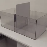 • The apparatus consists of a glass tank that can be partitioned with the help of an opaque sheet. The partition can be easily removed during the trials.