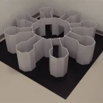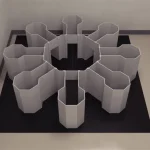 The radial maze comprises 8 arms arranged around an octagonal central area, each leading to a reward zone equipped with stationary polyvinylchloride bowls. The maze features 0.5 m tall walls made of opaque polyvinyl chloride, 0.75 cm thick, mounted on a solid rubber floor for ease of movement. Surrounding polyvinylchloride curtains ensure subjects cannot see the observer, extending from floor to ceiling. The octagonal central area measures 0.91 m across, with arms 17.8 cm wide and 30 cm long. Colored polyvinylchloride curtains cover arm entryways, serving as intra-maze cues (Digler et al., 2010).