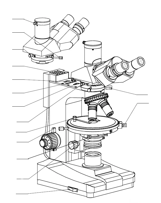 Trinocular, single diopter adjustment, inclined 30°, can send 100% of the image light to top photography port and also can be connected to the camera. 10X wide field plan eyepiece, field Φ18 mm, can provide expanse and smooth observation space.