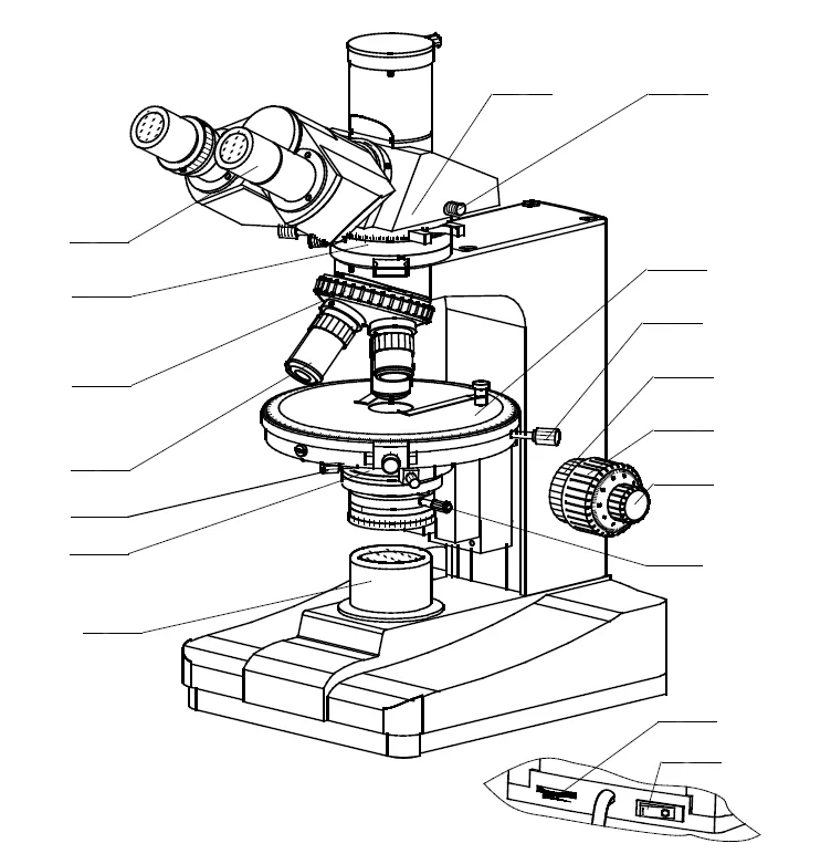 The intermediate attachment includes the impellent style of analyzer (360° rotatable with scale and fine nonius) which can be taken off from the light path and the impellent style of bertrand lens (center adjustable). It can be added λ compensator, λ/4 compensator or quarts wedge compensator.