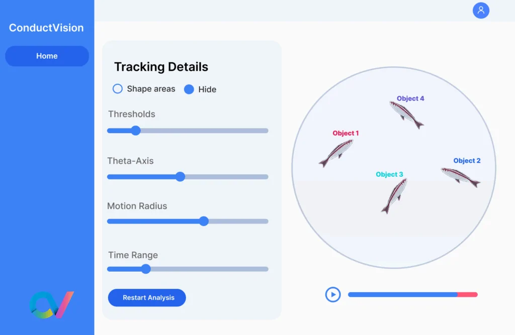 Zebrafish (Danio rerio) serve as a powerful model for studying social behavior, offering insights into neurodevelopmental and psychiatric disorders. ConductVision’s advanced tracking system enables precise monitoring of zebrafish interactions, facilitating high-throughput behavioral analysis.​